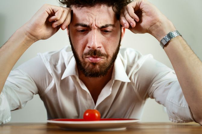- Hormonskog disbalansa: Povećava se nivo kortizola (hormona stresa), jer telo nedostatak hrane percipira kao stresnu situaciju.
